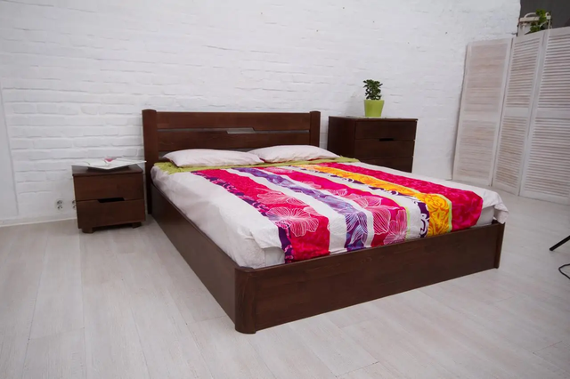 Двоспальне ліжко Айріс із підіймальною рамою. Виготовлена з бука, укомплектована ортопедичним ламельним блоком.