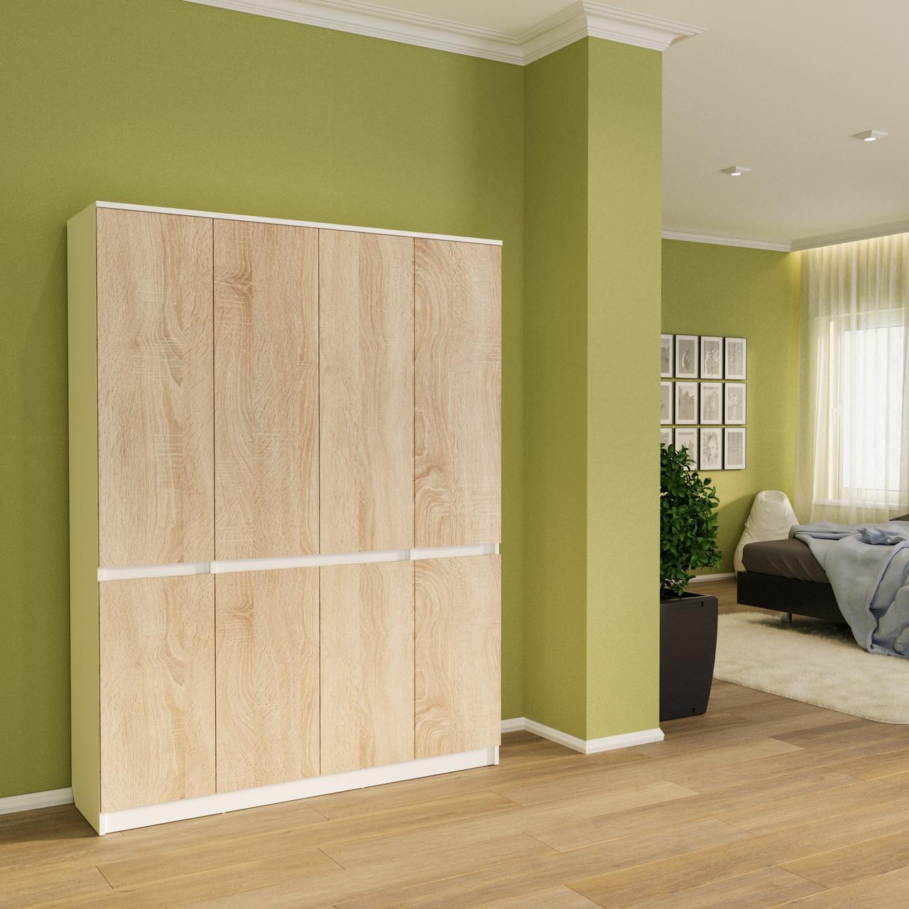 Якщо вам потрібна вузька шафа для спальні, модель Смузі стане чудовим варіантом. Світлі відтінки корпусу в кольорі сонома/білий візуально розширюють простір і створюють відчуття затишку. Така двостулкова шафа світла гармонує з різними стилями інтер'єру та водночас залишається практичним рішенням на щодень.
