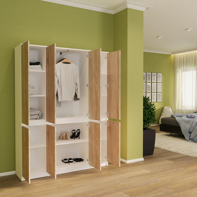 Шафа виготовлена з міцного ДСП Kronospan, безпечного та довговічного. Така двостулкова шафа у вітальню або спальню не займе багато місця, але водночас вмістить усе необхідне. Міцна конструкція, стійкість і надійність — відмінні риси цієї моделі. Ви можете купити двостулкову шафу з доставкою без зайвого клопоту.