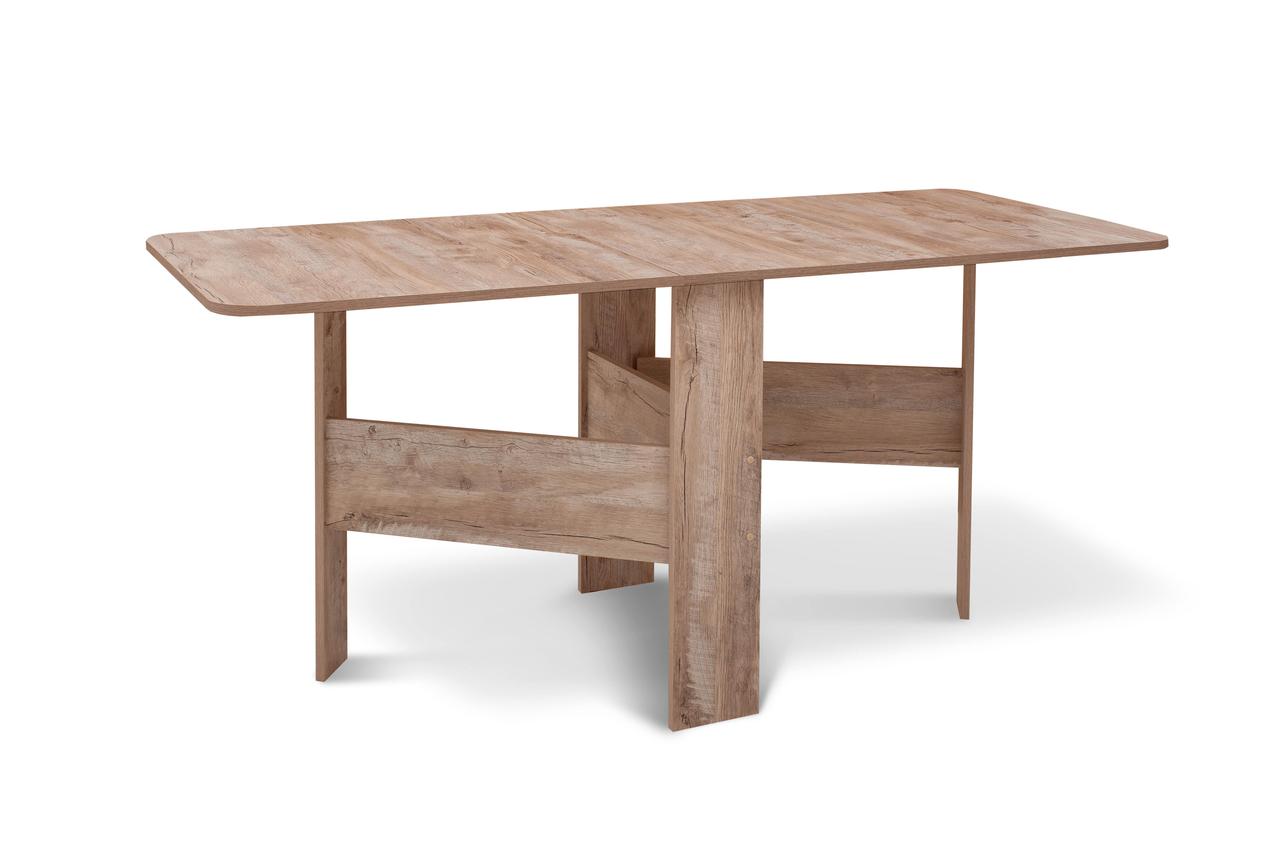 Ніжки-опори розташовані діагонально, що забезпечує гарну стійкість усієї конструкції. Стіл трансформер Книжка — чудове придбання для вашого будинку, а в нашому інтернет-магазині ви зможете замовити його за оптимально приємною для вас ціною.
