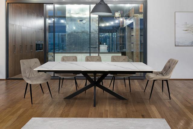 Стіл обідній Квант кераміка 160-220 см (чорний/білий мармур)