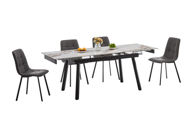 Стіл обідній Бастіон кераміка 140-200 см (чорний/білий мармур нефрит)